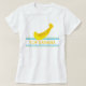Una camiseta de verano decorada con un gran plátano amarillo y las palabras TOP BANANA en la parte delantera, con rayas azules y verdes encima y debajo de las palabras. Divertido y bonito al mismo tiempo, ideal para todo el mundo y perfecto para la playa. ¿Por qué no ser el mejor plátano?