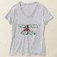 Camiseta con cuello en V de mujer, Negro, XL de adulto