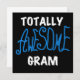 Camisetas Gram totalmente asombrosas, caramelos, tazas, agujeros de gramo, tarjetas, botones, pegatinas y más para que la abuela o gramo totalmente increíble esté con texto azul brillante con texto en blanco o negro para camisetas y regalos de colores claros y oscuros