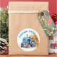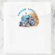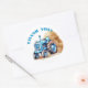 Un tractor de granjas azules rodea a los pegatinas con el texto "gracias". Pegue favores de cumpleaños a los huéspedes fiestas. Los pegatinas blancos tienen un tractor azul y una pila de imagen de heno. El texto es negrita, con letras gruesas en azul. Elija los tamaños redondos de 3 o 1,5 pulgadas.