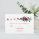 Elegante tarjeta de respuesta de invitación de boda floral invierno / Navidades con toronjas rojas y peonías blancas con ramas de abeto verde de pino estacional, bayas rojas y ramo de follaje sobre fondo blanco. Perfecto para un invierno / Navidades boda de estilo botánico. Tenga en cuenta que el color de fondo es modificable. Puede cambiarlo, así como las fuentes y los colores de las letras después de seleccionar la opción PERSONALIZAR adicional. — — Si necesita ayuda, por favor contáctame.