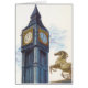 Imagen de viaje en ilustracion de época con la torre del reloj Big Ben y la estatua en el Palacio de Westminster en Londres, Inglaterra. Big Ben fue un espectáculo campeón del mundo que saltaba de caballo llamado originalmente Winston en honor de Winston Churchill. Big Ben es el apodo de la Gran Campana del reloj. El nombre oficial de la torre en la que se encuentra el Big Ben fue originalmente la Torre del Reloj, pero en 2012 cambió su nombre a Torre Elizabeth para conmemorar el Jubileo de los Diamantes de Isabel II.
