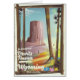 Devils Tower, afiche de viajes de vacaciones de Camping de Wyoming.