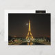 La Torre Eiffel se ilumina por la noche con una luna llena que da a París. Iluminación Eiffel © SETE- Illuminations Pierre Bideau