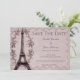Anuncia tu próximo día de boda con un anuncio de "Save the Date" de la Torre Eiffel Rosa. El diseño de "Save the Date" presenta la Torre Eiffel adornada con un marco floreado elegante contra un fondo grunge y un adorno de sello postal. También está disponible papelería de boda adicional con este diseño. ¿Necesita ayuda con la personalización? Por favor, contácteme y trabajaré en la redacción y los detalles para adaptar este diseño a su satisfacción.