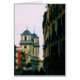 Enviar una nota a alguien con esta tarjeta de saludo y disparar desde la Plaza Mayor de un par de coloridas torres gemelas en Madrid, España.