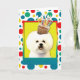 Invite a sus huéspedes con esta fantástica tarjeta de felicitación Bichon Frise Dog. Con una torta balanceada en la cabeza, el diseño hará sonreír y reír. BTW, Este diseño tiene varias versiones, con diferentes colores de fondo. También hay una versión de Cumpleaños Feliz.