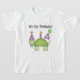 Una linda tortuga verde sonriente que lleva a un gorra fiesta con una vela de cumpleaños encendida en su espalda y el texto dice "Es mi cumpleaños". ¡Un globo de helio lleva el número 4!