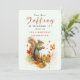 Haga especial su fiesta de cumpleaños con nuestros exclusivos suministros de fiesta de diseño de acuarela de ardilla de plumas de otoño. Navega por nuestra colección y trae un toque de magia otoñal a la celebración. Tarjeta de invitación por cumpleaños que puede personalizar con la información de su fiesta.