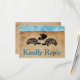 Este divertido rsvp permite a los huéspedes elegir una opción de menú. Con una imagen de fondo de una playa de arena y dos tortugas.
