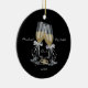 ¡Nuestro primer ornamento del navidad ofrece un par elegante de vidrios del champán con un sistema de anillos de bodas fijados en un fondo negro! ¡Personalice con su información y fecha y usted están todos fijan para ir! El regalo anticuado maravilloso del recuerdo para su primer navidad y una gran adición a usted navidad adornan la colección.