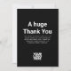 Personalice fácilmente esta tarjeta de agradecimiento al Personalizado con el logotipo comercial de la empresa, el nombre de la empresa, el nombre del empleado y el mensaje de agradecimiento. Un sencillo diseño de negocio con minimalistas y sencillos colores en blanco y negro completamente personalizable en tamaño frontal y posterior, cualquier color de fondo, sans-serif fuentes básicas y modernas y un aspecto profesional y claro. En la parte posterior hay un fondo elegante con un patrón de logotipo repetitivo, extraíble. Disponible también en forma cuadrada, en tamaños medianos, pequeños y grandes. Sin pedido mínimo. corporativo, empleado, estándar, clásico, minorista, pequeña empresa, placa de personalizado de retiro tarjeta de retiro agradecimiento apreciación cotización de jubilación pastor médico profesor abogado no olvide nunca la diferencia que ha hecho el jefe de gran empleado jugoso