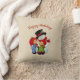 Personaliza esta almohada de lanzamiento de vacaciones con tu propia leyenda de texto y / o color de fondo. Imagen nostálgica y encantadora de dos adorables pequeños (niño, niña) abrazando a la Sra Snow Lady. Ver también otras almohadas coordinadas, adornos y otros artículos en esta colección de diseño.