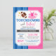 Lleve un divertido toque y un fiesta de cumpleaños para niños con temas de tutus usando estas lindas invitaciones. Este diseño incluye fútbol, tubo, rayas azules y puntos de polka rosa. Personalice fácilmente con los detalles de su evento.
