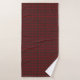 Alt text: "Towel set with a red and black checkered pattern, hanging neatly on a rod. Below, a single towel with a corner flipped, revealing the white underside."