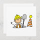 Un obrero de la construcción en un gorra duro amarillo trabaja en la boca de inspección de camisetas, caramelos, tazas, bolsas, tarjetas, pegatinas, cadenas de claves, botones y otros prendas y regalos de los obreros de la construcción.