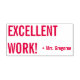 Este divertido diseño de sellos de goma incluye el motivador mensaje "¡TRABAJO EXCELENTE!" y un nombre personalizado del profesor. Podría ser utilizado por un profesor, educador o tutor al marcar asignaciones, para reconocer que el estudiante ha hecho un gran trabajo.