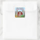 Tractor verde personalizado y granero con árboles caídos, calabazas, heno y pisadas de maíz en la granja de otoño gracias a los Pegatinas de la fiesta de cumpleaños para niños y chicas.