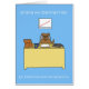 Un perro de caricatura sentado en el escritorio de su dueño. Las palabras "Trae a tu perro al día de trabajo, deja que otra persona tome todas las decisiones" acompañan la imagen.