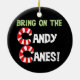 El caña de caramelo rayado texto que dice "¡Traigan los Cañones de caramelo!" en un adorno perfecto para cualquiera que no pueda conseguir suficientes latas de caramelo.