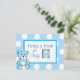 Oso de Teddy de Polka Azul y Blanco Trae un libro para la tarjeta de ducha para bebé bebé.
