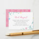 Reserve una tarjeta para una ducha con flores rosa. Estas bonitas tarjetas están diseñadas para inserciones con nuestras invitaciones de ducha de bebé Alice in Wonderland.