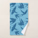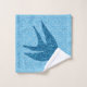 Toalla puesta en una huella textil de medios mixtos de golondrinas en vuelo, con un patrón vintage de nubes japonesas contra un fondo giratorio con estampado en cobalto y azul pálido