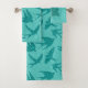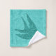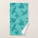 Toalla colocada en una huella textil de medios mixtos de golondrinas en vuelo, con un patrón vintage de nubes japonesas contra un fondo giratorio en agua turquesa y suave