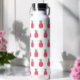 Botella de agua blanca rosa con patrón de piña rosada y opción para añadir nombre. Más productos con este diseño se encuentran en la colección siguiente
