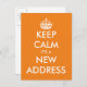 Guarde la tarjeta postal móvil tranquila para una nueva dirección / reubicación o fiesta de limpieza. Hagan de su propia gracia mantener la calma y sigan con el diseño de la parodia de su nueva casa. Mantenga el humor tranquilo para el cambio de dirección con respecto a la ubicación de la casa y de la empresa. Cambiar la cantidad para obtener el precio más barato por postal. Alegre color de fondo naranja o personalizado. Plantilla de tipografía de época con corona.