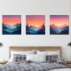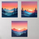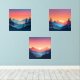 Este conjunto de tres hermosas obras de arte para la puesta de sol en las montañas muestra la serena belleza de la naturaleza en tonos vibrantes. Ideal para añadir un toque pintoresco y apacible a la decoración de su casa o oficina, estas piezas evocan la paz y la tranquilidad. Perfecto para los amantes de la naturaleza y del arte, este conjunto sería una adición encantadora a cualquier espacio mural.