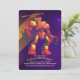 Invitación de moda para la fiesta de cumpleaños de un niño con un robot transformador con un fondo futurista. (FP). <br/>() La tarjeta es fácil de personalizar con su redacción, tipo de letra, color de letra y elección de seis tipos de papel.<br/>() ¿No es exactamente lo que buscas? Todos nuestros productos pueden ser personalizados diseñados para satisfacer sus necesidades sin cargo adicional.<br/>() Simplemente contáctenos en askpixieprints@aol.com<br/>() Productos de coordinación disponibles: