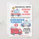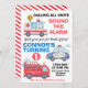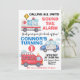 Boys Watercolor Transport Invitación al primer cumpleaños Cute invitación al cumpleaños al transporte acuático con un motor de fuego, un coche de policía azul y un motor de bomberos. Puede utilizarse para cualquier edad.