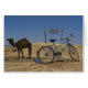 Camello y bicicleta frente a los khettaras, o pozos conectados en túneles, cerca de Erfoud, Marruecos