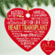 ¡Felicitaciones por tu precioso don de vida, un nuevo corazón! Diseño único, original y divertido para el receptor de trasplante de corazón. ¡Tu experiencia en palabras sobre este gran adorno de calidad! Personalice la fecha de trasplante en la parte posterior del ornamento. Creado por alguien muy cercano al viaje de trasplante de corazón. Este diseño se hizo para encajar en el adorno en forma de corazón.