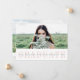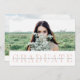 La moderna invitación fotográfica de graduación incluye tu foto panorámica o horizontal favorita en la parte delantera, con "graduados" mostrados bajo elegantes letras rosas. Personaliza con tu nombre, colegio y año de graduación en un simple overlay blanco. Las tarjetas se revierten a una foto adicional con una franja en la parte inferior para personalizar con los planes del graduado para la universidad o carrera. Una elección elegante y moderna para graduados de 2022.