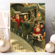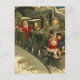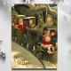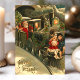 Hermosa tarjeta postal vintage de tren de Navidad. "Felicidades de Navidad" escrito en la esquina inferior izquierda. Este diseño presenta a un conductor de tren Santa Claus con dos niños pequeños enganchados en la parte delantera del tren.