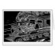 Tren de vapor, dibujo con lápiz y tinta, 1984. Obra de Barry Cooke. Uno de mis clásicos dibujos de lápiz y tinta, lleno de vibrante movimiento.