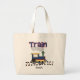 Los colores primarios se entrenan en una pista y el texto azul con un borde rojo que dice "Tren" en camisetas de tren, tazas, mousepads, bolsas de té y otros equipos de tren, ¡perfecto para el pequeño ingeniero o conductor! Añada fácilmente el nombre de su hijo antes de pedir a este lindo bolso de tetas de tren.