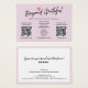 This Trendy modern QR code gift card with stylish calligraphy script is a perfect choice to show your gradtitute to your customer. Features 2 QR code, social media and networking info. On the back of the card you can write more message to your customer or just write your business info. Your customer will loves this pretty and chic QR code gift certificate.