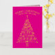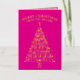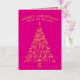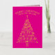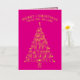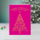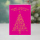 These trendy tree minimalist folded non-photo Christmas cards in hot pink with real gold foil printing are ready for you to make them your own. Easy to personalize, MERRY CHRISTMAS as well as your name in a graceful arch at the top and the year at the bottom serving as the trunk of the tree are all simple to edit with the provided text templates and will be printed in real gold foil on the vibrant hot pink background. The Christmas tree itself is a typography design of fun mixed fonts spelling out festive words from the holiday season on your custom folded Christmas cards - JOY, CHEER, HAPPY HOLIDAYS, MERRY, PEACE, HOPE, FA LA LA LA LA, HOLLY and JOLLY. These cute personalized Christmas cards open to reveal a pattern of simple light pink trees on a slightly darker pink background. A white area on the right hand panel contains an additional text template for your names and a custom holiday message in a pink font. Spread holiday cheer with a dash of elegant shimmer and shine with these custom folded non-photo holiday cards in hot pink and gold foil.