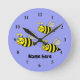 Tres abejas en un reloj de pared acrílico azul
