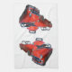 Las imágenes son tres elegantes coches clásicos rojos y blancos