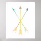Tres flechas cruzadas pared arte amarillo turquesa gris