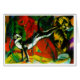 Aceite hermoso y de colores vivos sobre la pintura de lona del artista alemán Franz Marc titulada "Tres gatos". El gato en primer plano es blanco y negro, sobre sus patas delanteras con patas traseras en el aire, mientras que un gato amarillo y un gato rojo grande están al fondo. Maravillosa combinación de rojos, verdes, amarillos y morados. Fecha de finalización: 1913.