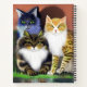 Revista en un retrato de tres gatos con actitud seria - estos tipos se refieren a negocios - un ruso azul, un persa marrón y blanco, y un naranja y blanco, tigre a rayas tabby