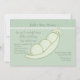 Una invitación dulce, en un color verde suave, ofreciendo tres guisantes en una vaina. La frontera superior tiene un golpeteo y un blanco, ajuste horneado a la crema y con pan rallado de Paisley del bebé.