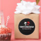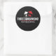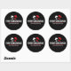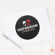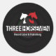 Un pegatina redondo con el logo de la etiqueta de registro y publicación de Tres jinetes.