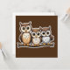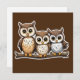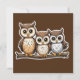 Tres pequeñas postales cuadradas de búho
