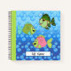 Aquí hay un diseño perfecto para los niños. Este cuaderno presenta un fondo de degradado azul, con un patrón de burbujas y tres deliciosos peces pequeños. Por el enlace de espiral hay una banda verde amarilla y la parte inferior tiene un área para el nombre de una bodega (o puede quitar la caja). Estos portátiles versátiles están disponibles en tres estilos y cuentan con una selección de seis colores en espiral. Lleve su diseño personal aún más lejos eligiendo una de las ocho opciones de diseño de página, incluyendo College Ruled, Graph y Recipe. Las páginas del cuaderno que se muestran aquí son Páginas prácticas, para niños que aprenden a imprimir.
